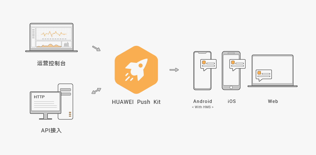 推送服务(Push Kit)是华为提供的消息推送平台,建立了从云端到终端的消息推送通道。通过集成推送服务,您可以向客户端应用实时推送消息,让应用更精准触达用户,是开发者提升用户感知度和活跃度的一件利器。