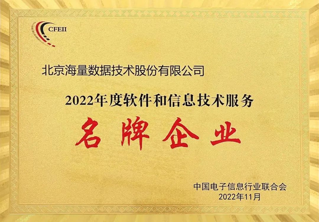 “2022年度软件和信息技术服务名牌企业“ 奖牌