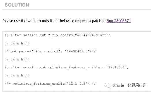 通过使用alter session set "_fix_control"='14402409:off';或 /*+opt_param('_fix_control', '14402409:0')*/ 有问题的SQL语句秒级输出,至此问题点确认。