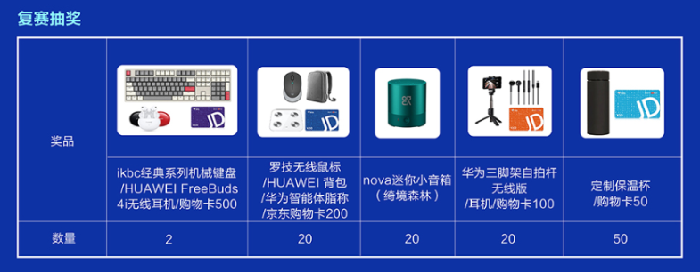 每邀请20位好友完成参赛报名,即可获得价值100元奖品;邀请满40位好友完成参赛报名,即可获得价值200元奖品。邀请好友参赛最多的前三名,可获得价值500元的最佳推广奖,HERO联盟Gauss松鼠会专栏图文活动评论盖楼最多者,可获得价值900元的HUAWEI FreeGO便携蓝牙音箱。本次知识问答活动将在决赛名单公布时,在直播间面向所有Gauss松鼠会公众号的粉丝,抽取3个幸运奖。