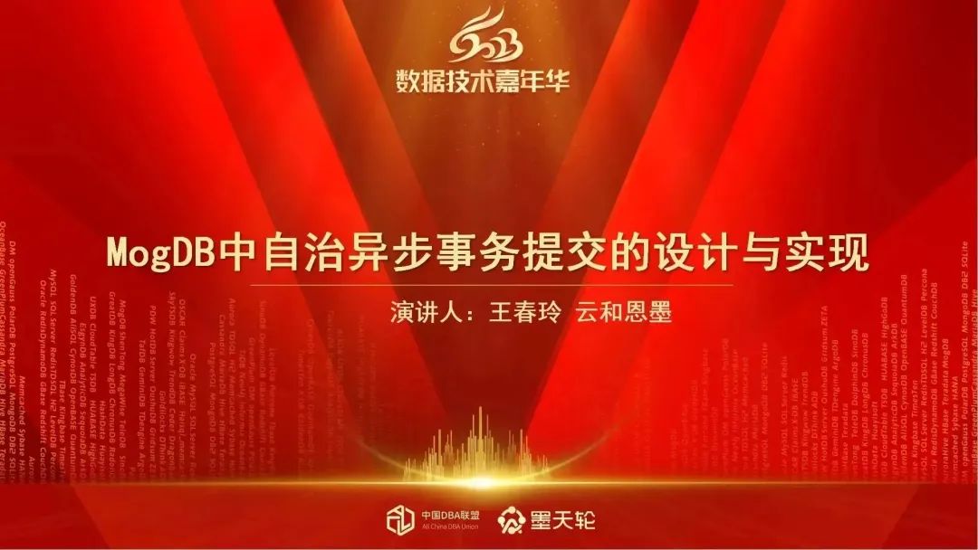 2023年4月7-8日,由中国DBA联盟(ACDU)和墨天轮社区联合主办的第十二届『数据技术嘉年华』(DTC 2023) 在北京新云南皇冠假日酒店成功举办。云和恩墨·本原数据内核研发工程师王春玲在“智能前沿:数据库内核技术”专题论坛上发表了《MogDB中自治异步事务提交的设计与实现》的演讲。本文根据王春玲的演讲内容进行整理归纳,供大家参考。
