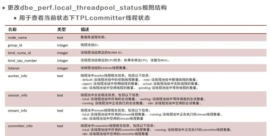 同时,为更好地监控集群状态,MogDB 提供了查看线程状态和会话状态的视图(如下图所示):TPLcommiter线程状态视图用于查看现在集群当中有多少个TPLcommiter线程;会话状态视图用于查看处于各状态下的session分别有多少个。