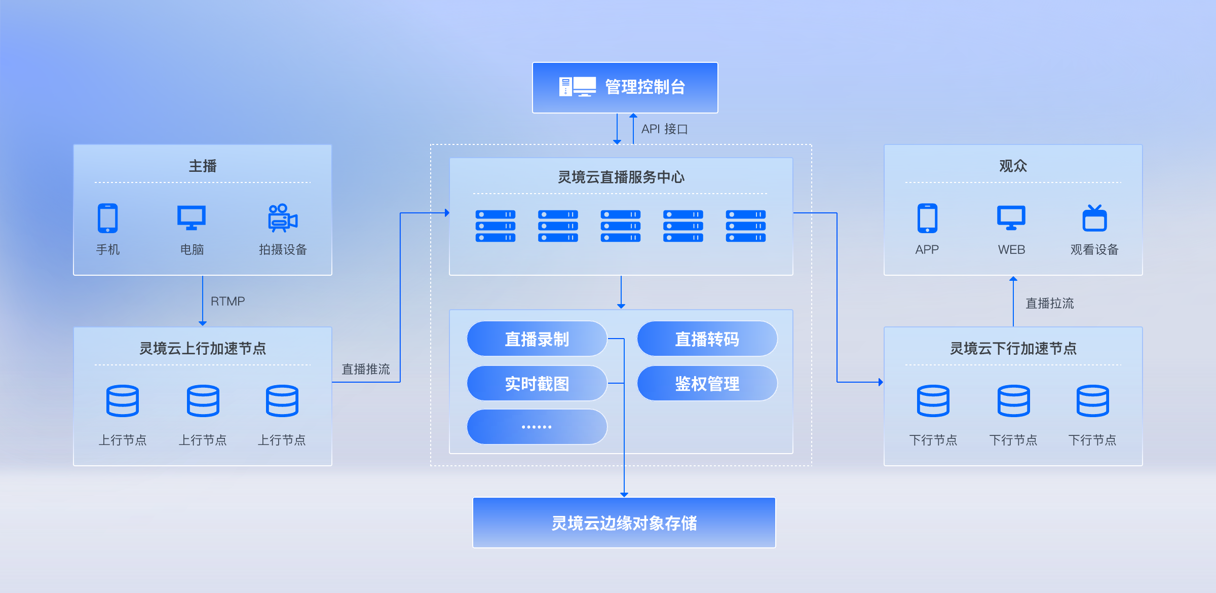 灵境云边缘流媒体直播 EdgeLive 现已通过娱乐直播、GAME直播、在线教育、电商直播和广电新媒体等多个领域的客户的充分验证,是优化直播体验的极优手段。