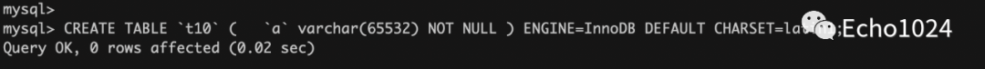 所以将varchar的长度降低到65532byte即可成功创建该表