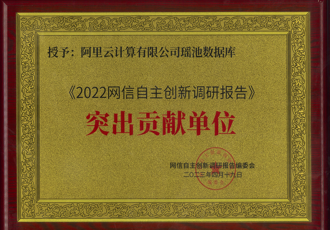 作为《报告》深度参编单位,阿里云瑶池数据库荣获“突出贡献单位”称号。