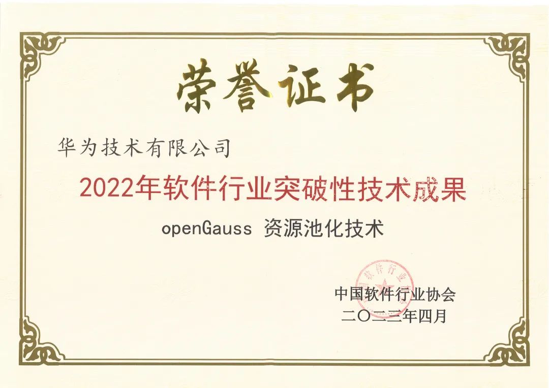openGauss资源池化技术入选“2022年软件行业突破性技术成果”