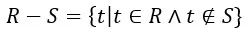 其结果关系仍为n目关系,由属于R而不属于S的所有元组组成。