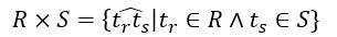 两个分别为n目和m目的关系R和S的笛卡尔积是一个n+m列的元组的集合。元组的前n列是关系R的一个元组,后m列是关系S的一个元组。若R有k1个元组,S有k2个元组,则关系R和关系S的笛卡尔积有k1k2个元组。记作: