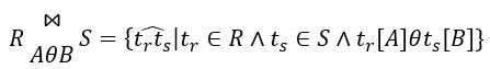 其中,A和B分别为R和S上列数相等且可比的属性组,A是比较运算符。连接运算从R和S的笛卡儿积RxS中选取R关系在A属性组上的值与S关系在B属性组上的值满足比较关系