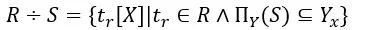 R与S的除运算得到一个新的关系P(X),P是R中满足下列条件的元组在X属性列上的投影:元组在X 上分量值x的象集Yx包含S在Y上投影的集合。记作: