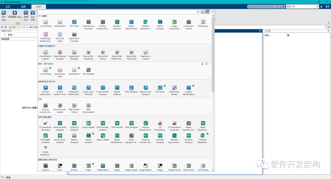 在MATLAB R2020a版本中应用程序如图1-1所示。