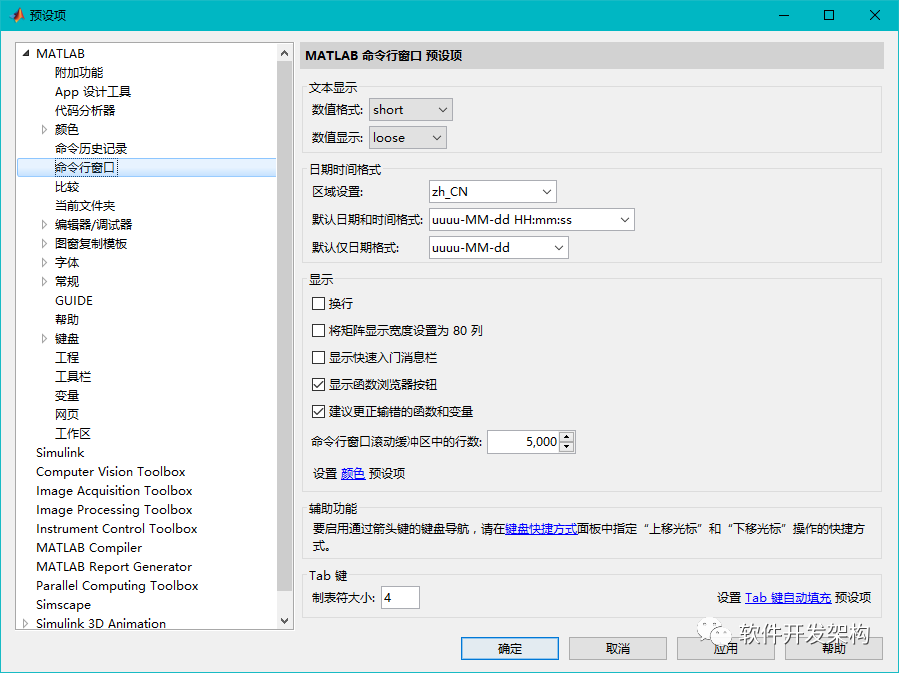● 预设:用于设置MATLAB界面窗口的属性,默认为命令行窗口属性,单击“预设”按钮弹出如图1-5所示的对话框。