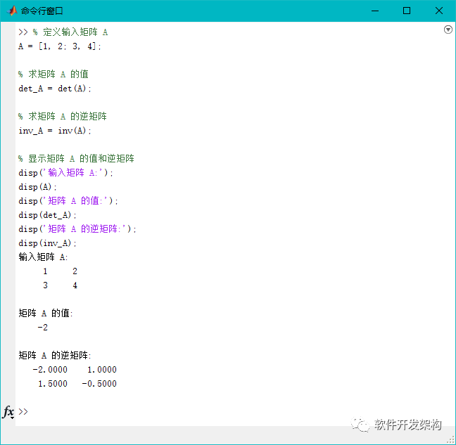 注意:“>>”是运算提示符,表示MATLAB处于准备状态,等待用户输入指令进行计算。当在运算提示符后输入命令,并按Enter键确认后,MATLAB会给出计算结果,并再次进入准备状态。