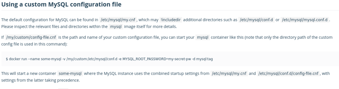 是不够的,还需要自定义一些配置文件,自定义配置文件有两种方法,一种是进入容器并修改里面的my.cnf