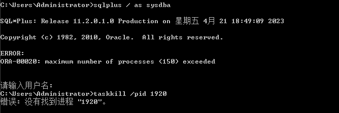 当 Windows 下的 Oracle 出现 ORA-00020 报错导致无法访问时,此时无法正常启停 Oracle 。如果是其它进程连接 1521 的进程过多导致的无法访问数据库,可以通过 taskkill 杀进程的方式降低会话数。如果是无效进程ID,此时只能通过重启 Oracle 服务解决。重启之后通过修改启动参数调整进程数。