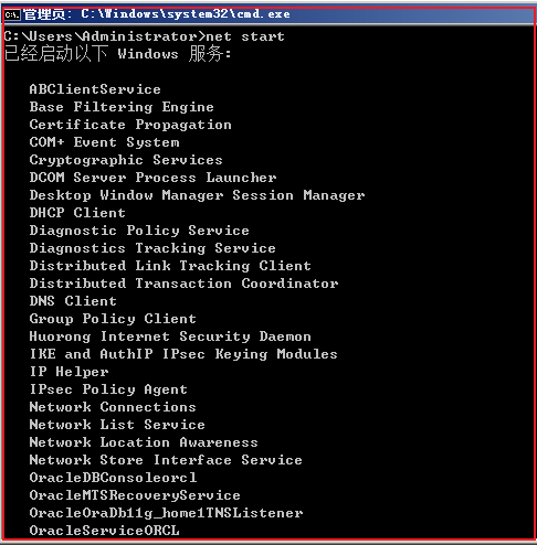 除了通过图形界面方式重启 Oracle 服务,在命令行也可以查看服务状态: