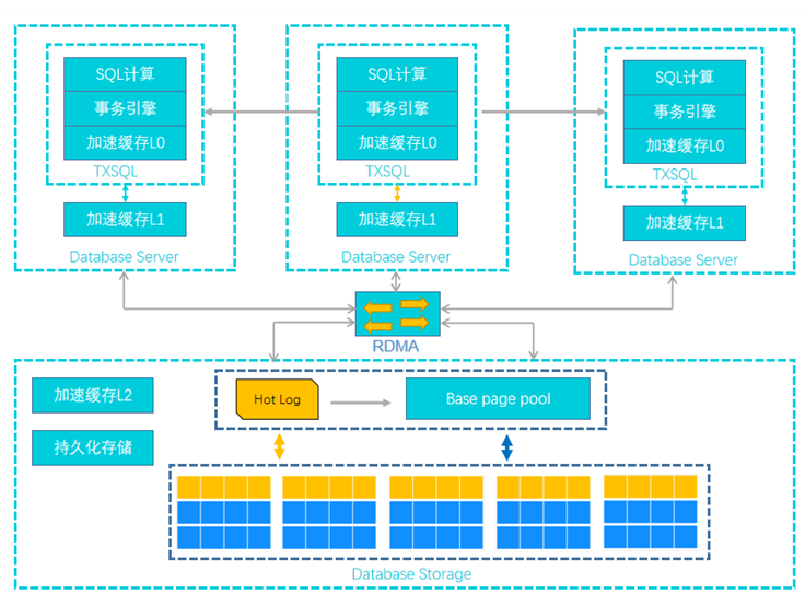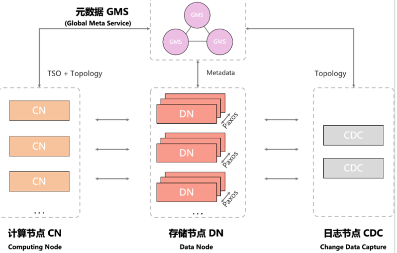 PGXC 类数据库,如阿里云PolarDB分布式版(PolarDB-X)、华为云云数据库 GaussDB、腾讯云TDSQL PostgreSQL版(原TBase),中兴通讯GoldenDB分布式数据库等,采用了基于计算存储分离的Shared-Nothing系统架构。其可对表进行水平的拆分,具备PB级数据负载能力,适合OLTP与OLAP的高并发场景。