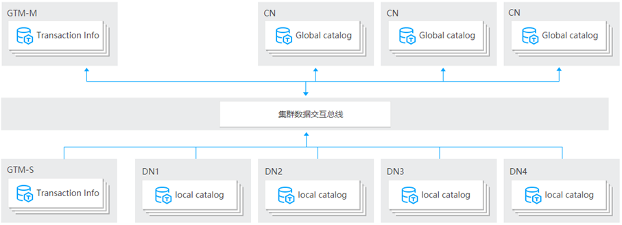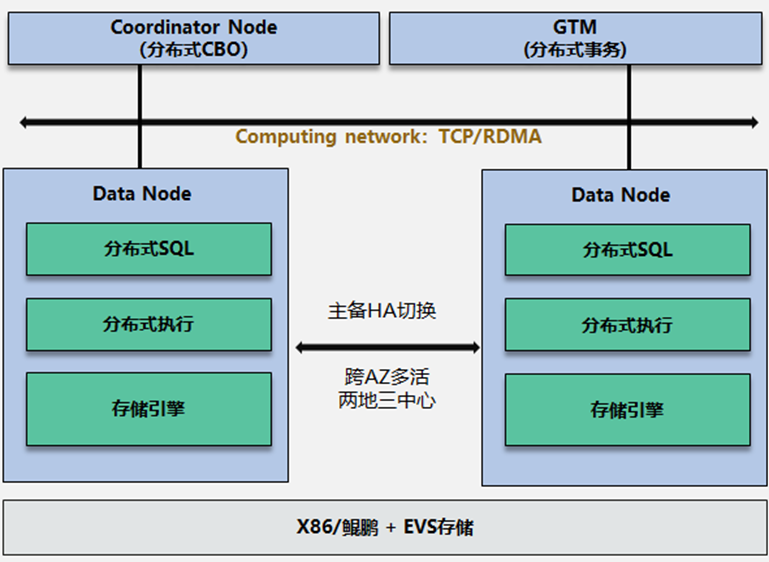 Coordinator(协调节点):接收SQL语句,确认GXID和全局快照,向DN发出语句。提供全局透明的并发性和事务完整性。