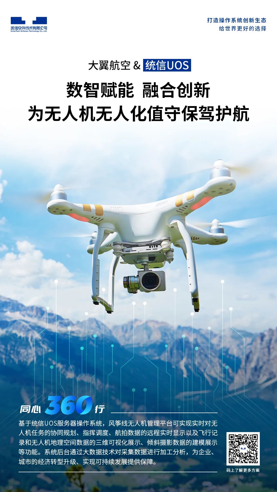 为此,统信软件与大翼航空、华鲲振宇达成深度合作,基于统信UOS服务器操作系统,共同推出风筝线无人机管理平台一体机联合解决方案,以驱动整个产业迈向数字化、智能化、规模化发展。