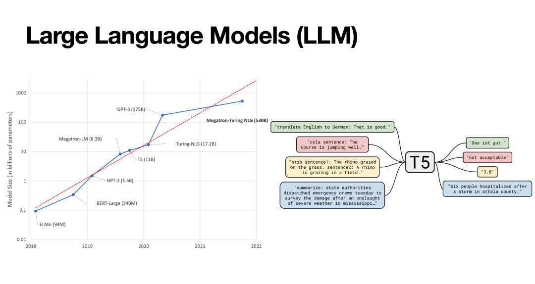 语言模型(LM)是一种编码和理解自然语言的NLP模型。早期的Word2Vec等研究工作试图进行字词编码表示语义,但这一做法讲所有字/词的语义编码固定,无法充分利用上下文信息处理一词多义等复杂语义。因此,以BERT为代表的LM通过预训练学习整句的语义表示,达到了更好的自然语言理解性能。此后,一系列研究扩大了语言模型的规模(LLM),其参数在近几年达到了千亿量级,同样取得了进一步的表现提升;为了充分利用LLM的能力,T5等工作提出了基于prompt的自然语言理解和生成范式。