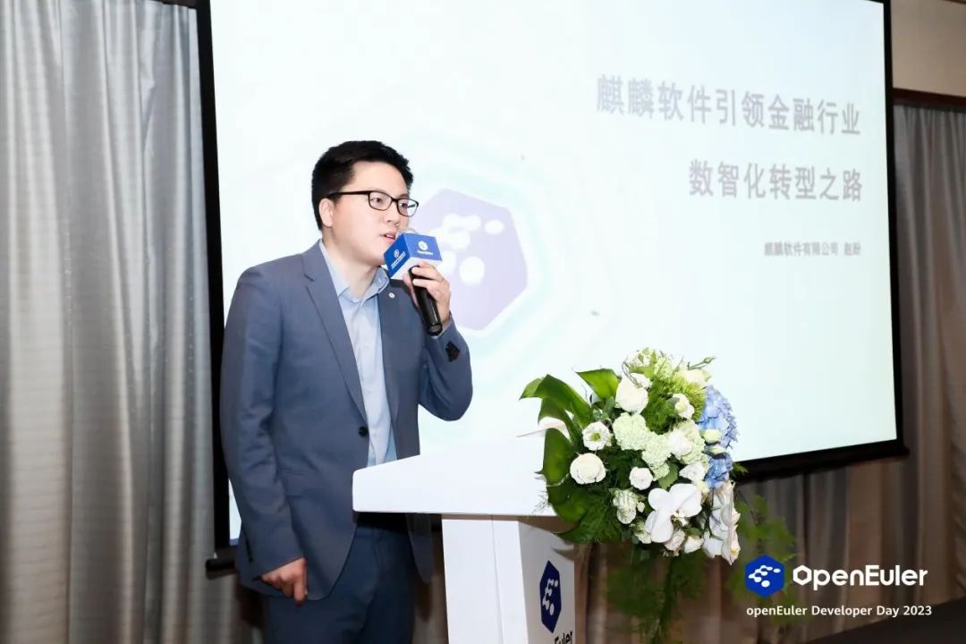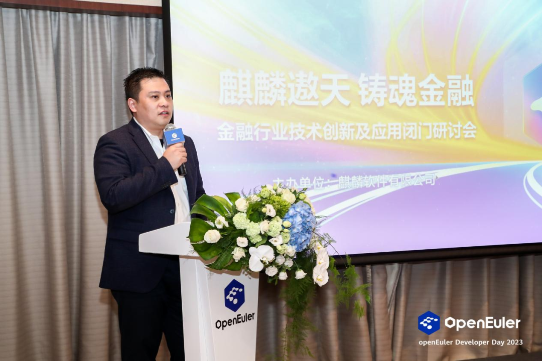 openEuler委员会主席江大勇在致辞中表示,以麒麟软件作为代表的国产操作系统企业助力金融行业数字化转型,积极提供技术和服务支撑。openEuler社区愿携手伙伴、用户,支撑好金融行业,夯实金融行业创新发展的数字底座,加速金融数字化转型。
