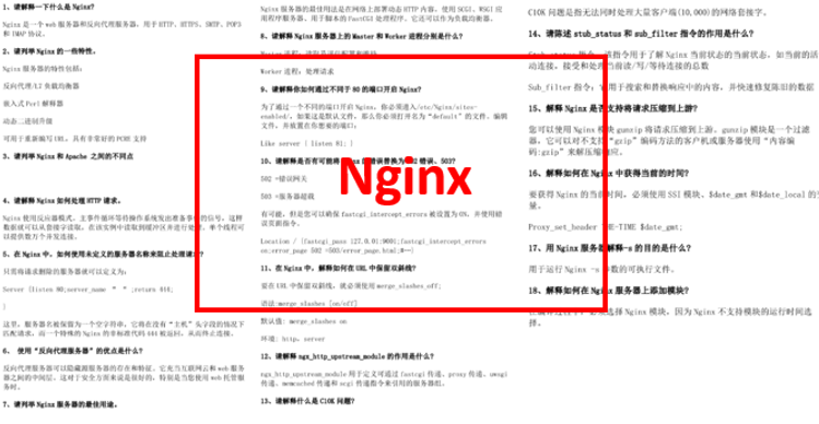 这些面试题全部在下面的PDF里面,内容涵盖:运维技术点Linux、Nginx、ZooKeeper、Dubbo、Redis、MySQL、RabbitMQ、Kafka、K8S等技术栈,每个技术以及在PDF中的对应位置都截图在下文,大家可以先进行查看。