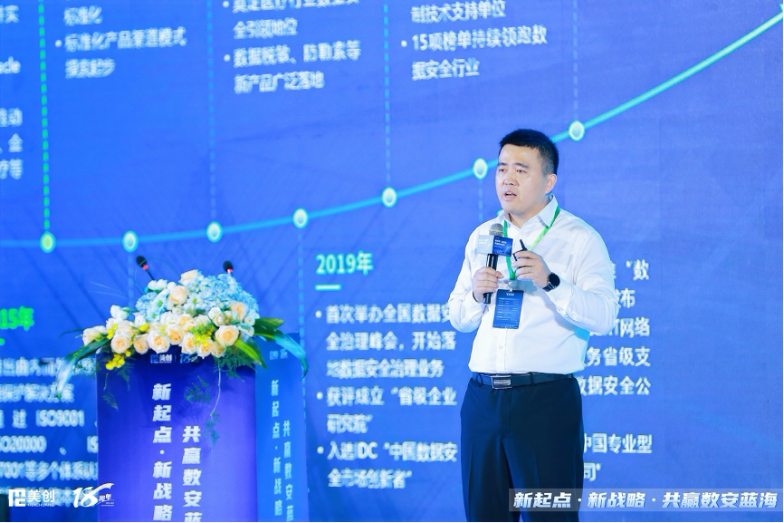 美创科技副总裁、生态合作业务中心总经理罗亮亮,对美创科技发展历程、产品体系、技术创新、市场品牌竞争力、行业引领进行全面介绍,展现了美创在数据安全领域的深厚积累与领先优势。