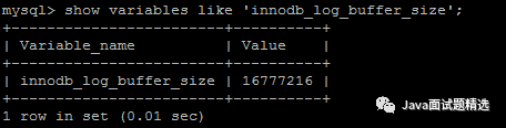 很重要一点,redo log是什么时候写盘的?前面说了是在事物开始之后逐步写盘的。 之所以说重做日志是在事务开始之后逐步写入重做日志文件,而不一定是事务提交才写入重做日志缓存,原因就是,重做日志有一个缓存区Innodb_log_buffer,Innodb_log_buffer的默认大小为8M(这里设置的16M),Innodb存储引擎先将重做日志写入innodb_log_buffer中。