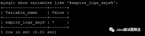 binlog的默认是保持时间由参数expire_logs_days配置,也就是说对于非活动的日志文件,在生成时间超过expire_logs_days配置的天数之后,会被自动删除。