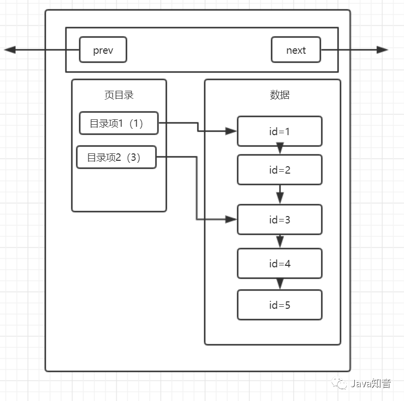 分析一下这张图,实际上页目录就像是我们在看书的时候书本的目录一样,目录项1就相当于第一节,目录项2就相当于第二节,而每一条数据就相当于书本的每一页,这张图就可以解释成,第一节从第一页开始,第二节从第三页开始,而实际上,每个目录项会存放自己这个目录项当中最小的id,也就是说,目录项1中会存放1,而目录项2会存放3。
