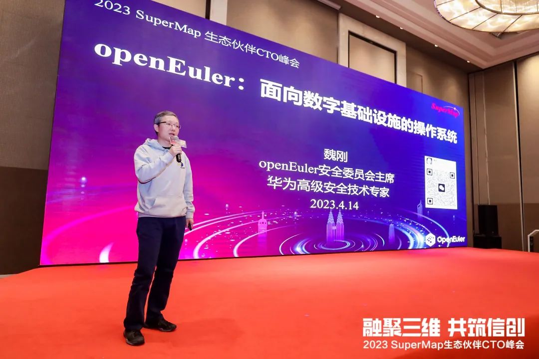 近日,2023 SuperMap生态伙伴CTO峰会在山城重庆召开。openEuler安全委员会主席魏刚代表openEuler社区出席峰会,与大家分享了openEuler与超图软件的密切合作。