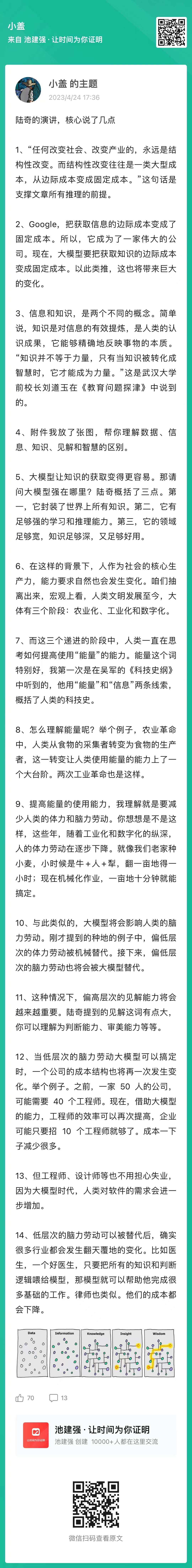 这几天被陆奇的演讲刷屏了 ,回顾请看 《我的大模型世界观》,陆奇不仅讲述 AI的发展历史,和应用技术上的未来发展趋势,更是有对不同垂直行业应用AI 的分析。文章内容对大多数人可能看起来比较远,但是最终会影响到我们每个人。