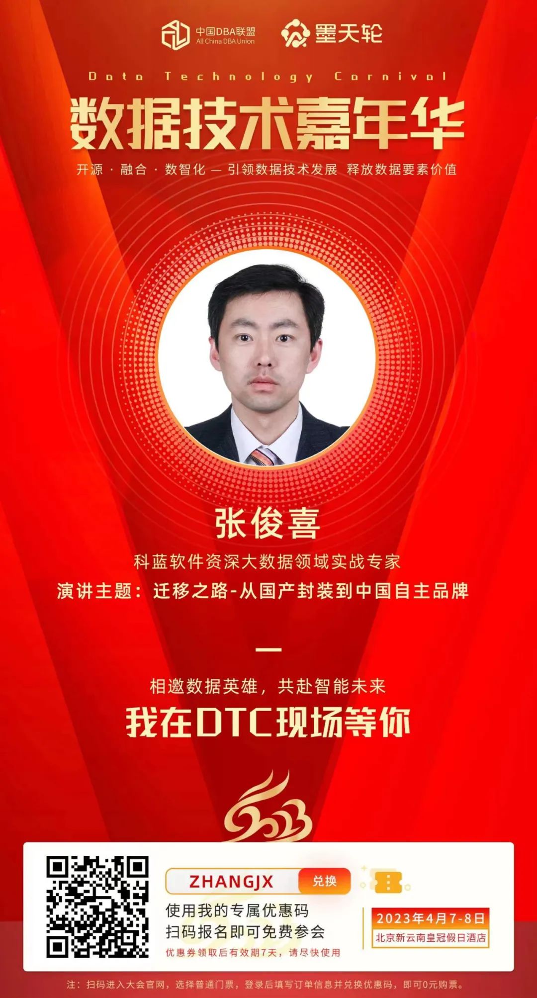 同时,2023年4月7日,第十二届『数据技术嘉年华』也邀请到科蓝软件资深大数据领域实战专家张俊喜,带来《迁移之路:从国产封装到中国自主品牌》的主题分享。