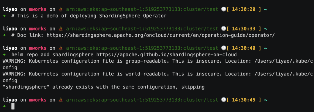 helm repo add shardingsphere https://apache.github.io/shardingsphere-on-cloud