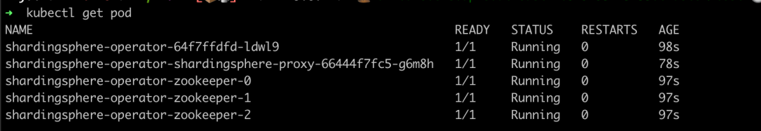 利用 kubectl get 查看 ShardingSphere Proxy 集群状态
