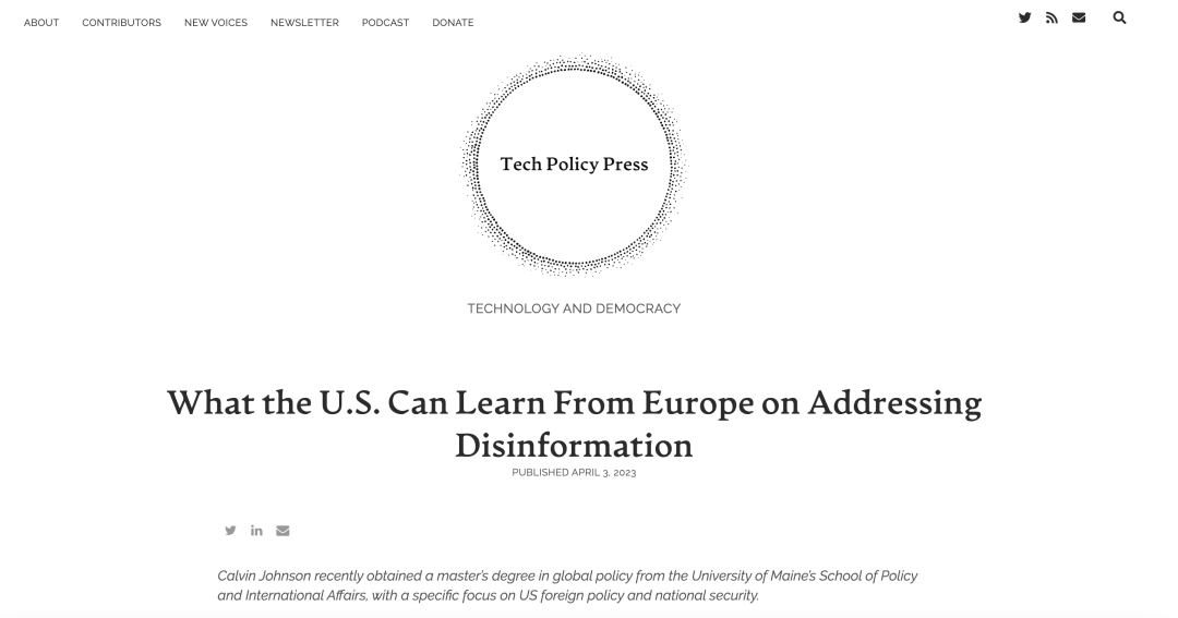摘要:Calvin Johnson 针对美国在应对虚假信息方面可以向欧洲学习什么进行撰文,提及欧洲管理虚假信息的若干政策,例如《数字服务法》 (DSA) 等。