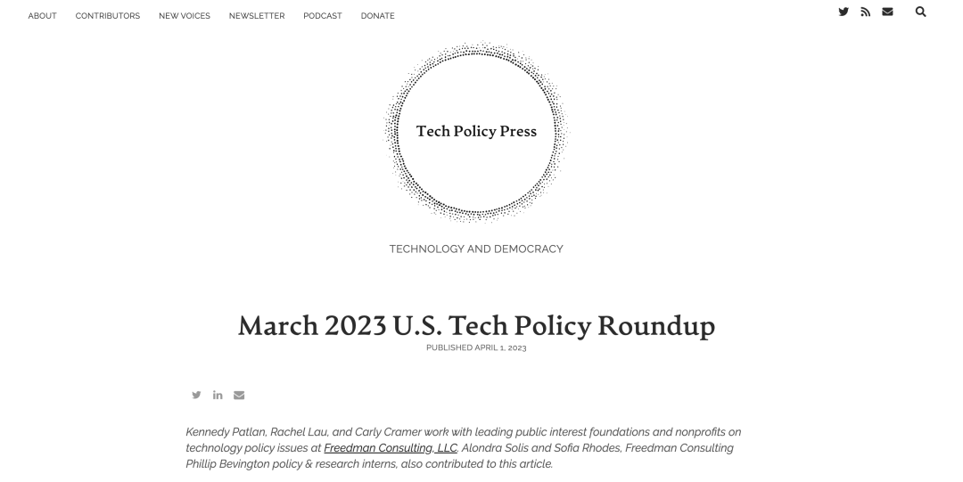 摘要:Tech Policy Press 发布 2023 年 3 月美国技术政策综述,其中详细介绍了 DATA 法案、反社会 CCP 法案、无资金支持对抗性宣传法案、反对拟议禁令等。