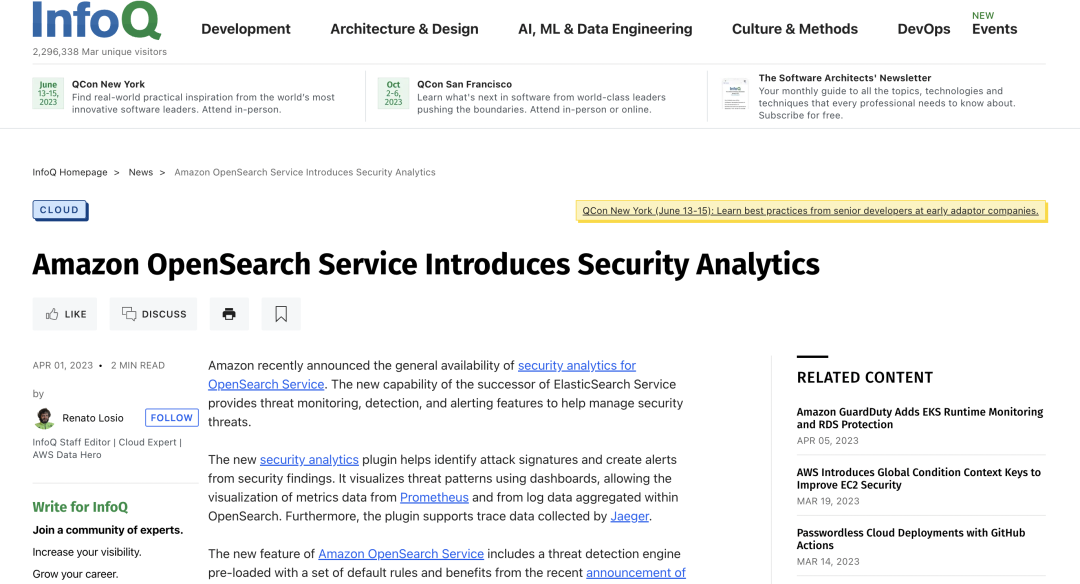 摘要:亚马逊最近宣布为 OpenSearch 服务全面提供安全分析功能。ElasticSearch Service 的继任者的新能力提供了威胁监控、检测和警报功能,以帮助管理安全威胁。数据技术嘉年华(DTC)