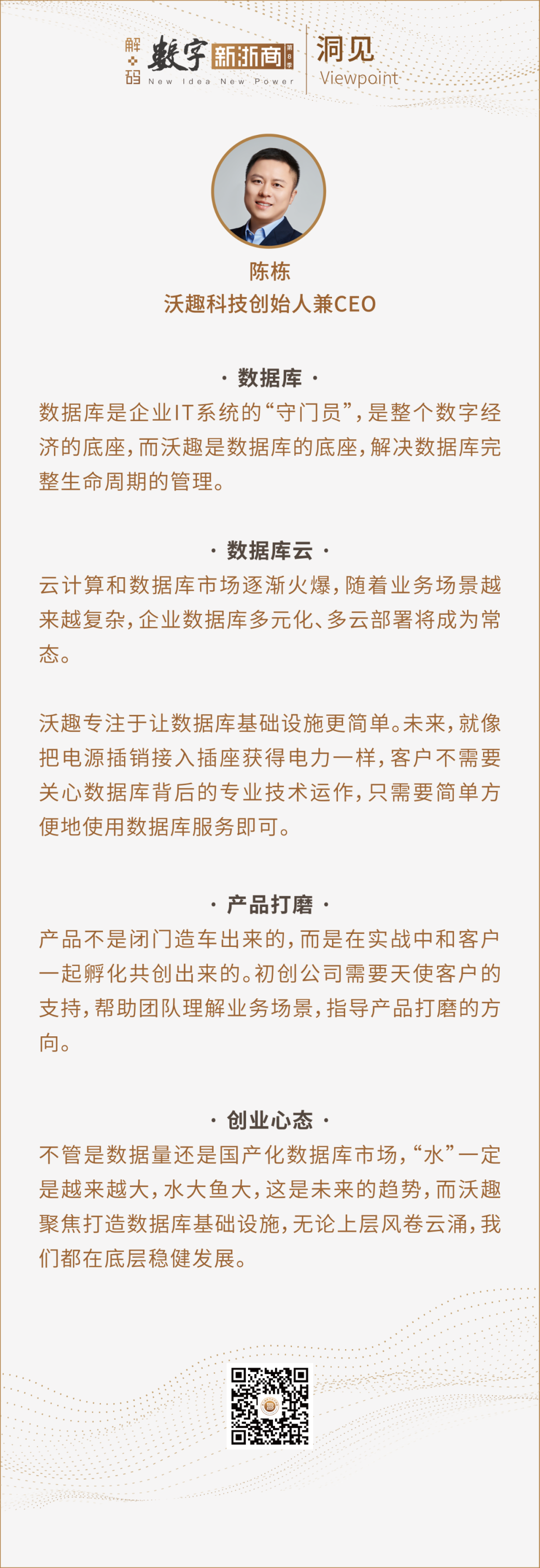 陈栋:不管是数据量还是国产化数据库市场,“水”一定是越来越大,水大鱼大,这是未来的趋势,而沃趣聚焦打造数据库基础设施,无论上层风卷云涌,我们都在底层稳健发展。