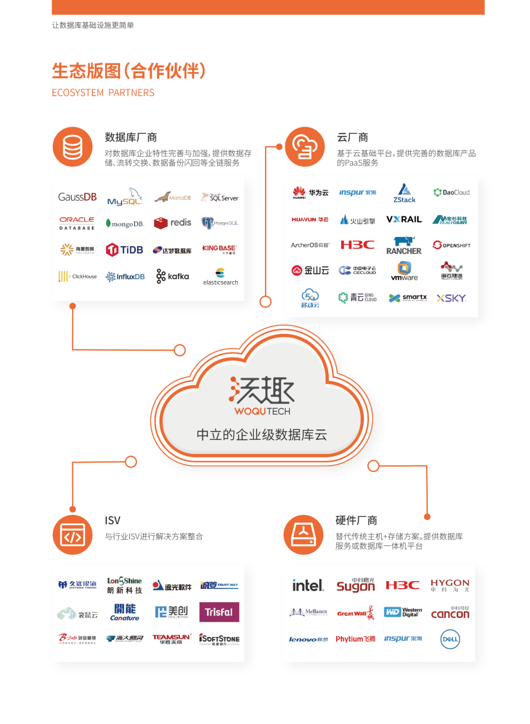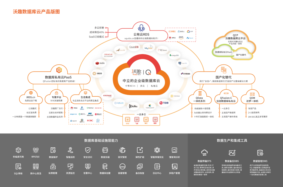 十年间,伴随着数据库云化、分布式等技术趋势,企业IT用户对多源异构数据库的需求显著增加。针对这技术痛点,沃趣率先推出首个“中立的企业级数据库云平台”,将数据库、云厂商、硬件厂商连接在一起,为用户提供开箱即用、更简单、更坚实的数据库基础设施,让用户专注于业务本身,释放数据生产力。多年的合纵连横,沃趣与10多种全球主流数据库厂商和20多家云厂商合作,累计服务3000+企业客户,覆盖40+行业,打造了完整的数据库云生态沃土。