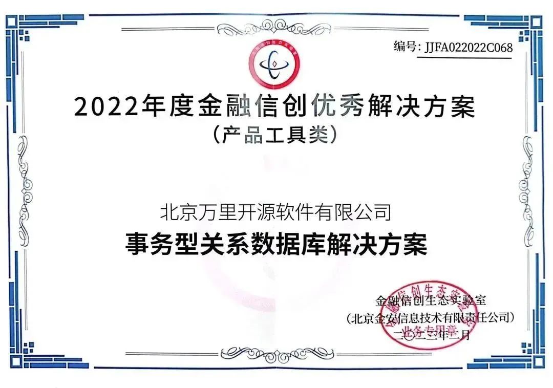 在此之前,金融信创生态实验室发布的《金融信创优秀解决方案》中,万里数据库凭借事务型关系数据库解决方案成功入选,是其中为数不多、以单一数据库产品作为信创解决方案主体入选的厂商之一,表明万里数据库公司及产品均符合国家金融信创要求。