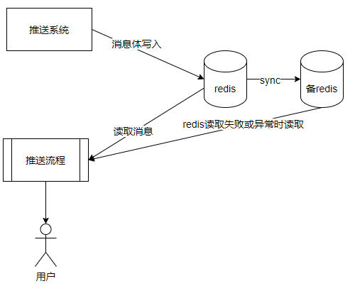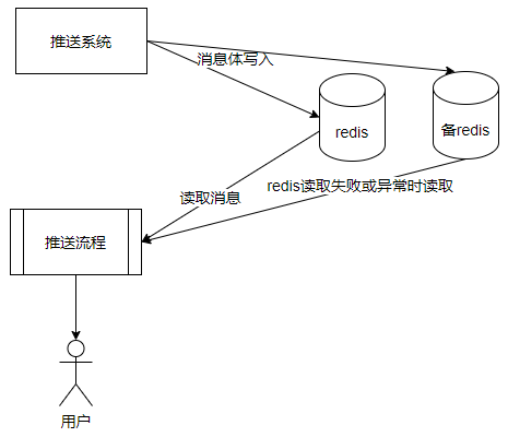 做好并发流量控制后,能很好的预发突发热点问题。推送系统内部,由于使用Redis集群缓存消息,出现过因为Redis集群故障导致消息无法及时送达问题。因此,我们考虑对Redis集群做相关容灾方案设计,实现系统在Redis集群故障期间,也能及时推送消息并保证消息不丢失。