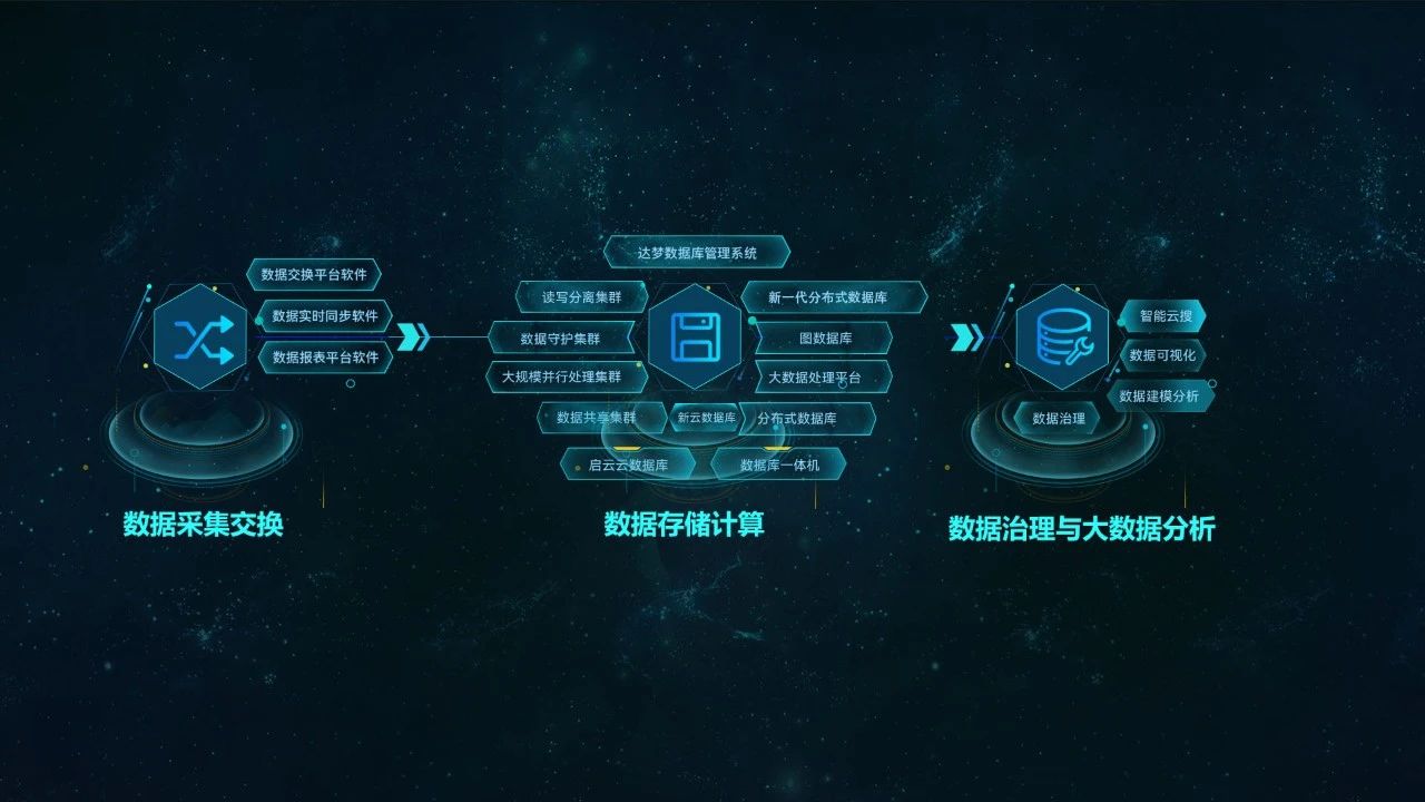 达梦公司的产品覆盖了从数据采集交换、数据存储计算、数据治理到分析服务等数据全生命周期的管理,为高校用户提供全栈数据产品和解决方案。