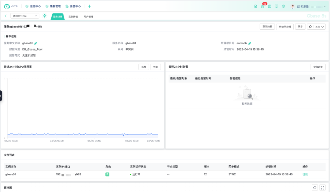 下面介绍在 zCloud 中部分 GBase 8s 管理组件的使用情况: