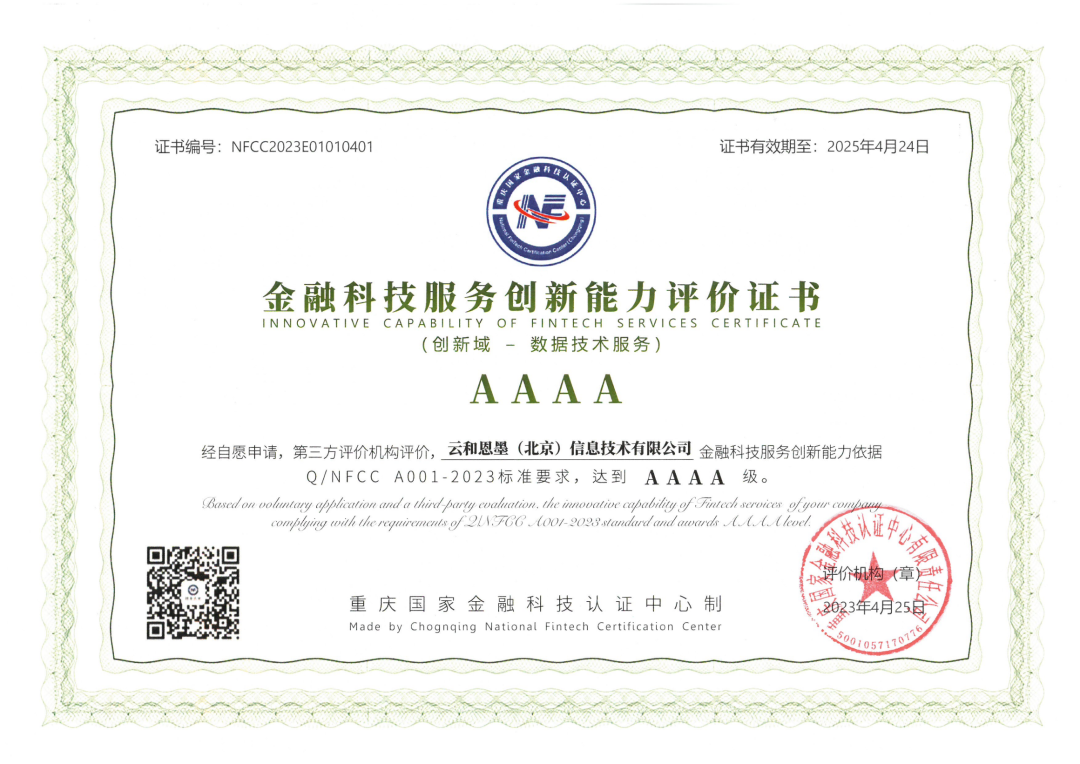 近日,第五届中新金融峰会“探索金融科技新范式·国际合作共促创新发展”分论坛在重庆江北区举行。论坛上,重庆国家金融科技认证中心正式发布了《金融科技服务能力评价指标》,旨在通过构建金融科技标准化评价体系,助力金融科技高质量发展。云和恩墨作为首批试点的金融科技产品提供商,获评创新能力“AAAA”等级。据介绍,《金融科技服务能力评价指标》共涵盖105项评价指标、6大能力域、5个能力层级和2套评价模型,从多维度进行系统性的评价,并通过评级的方式精确展现企业的金融科技服务能力水平。“综合能力评价”和“创新能力评价”两套不同类型的评价模型也充分包容了金融服务企业的多样性,拓宽了标准的应用范围。