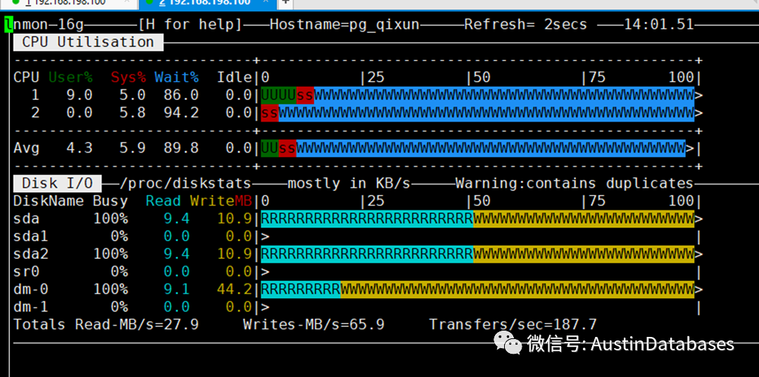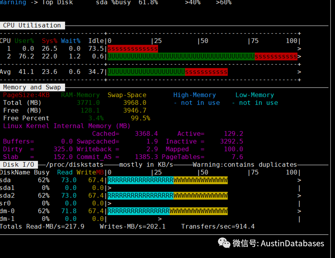 整体从NMON 查看系统的状态,总体的系统都在满负荷的而工作。