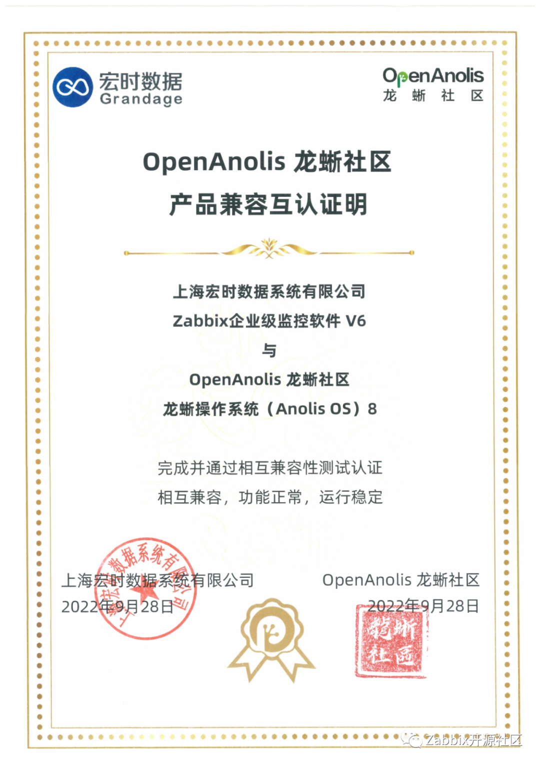 近日,Zabbix与阿里龙蜥完成了产品兼容性认证工作。测试结果表明:龙蜥操作系统与Zabbix6.0完美兼容,系统运行稳定,性能卓越,达到了通用兼容性要求及性能、可靠性要求,完全满足用户的关键性应用需求。
