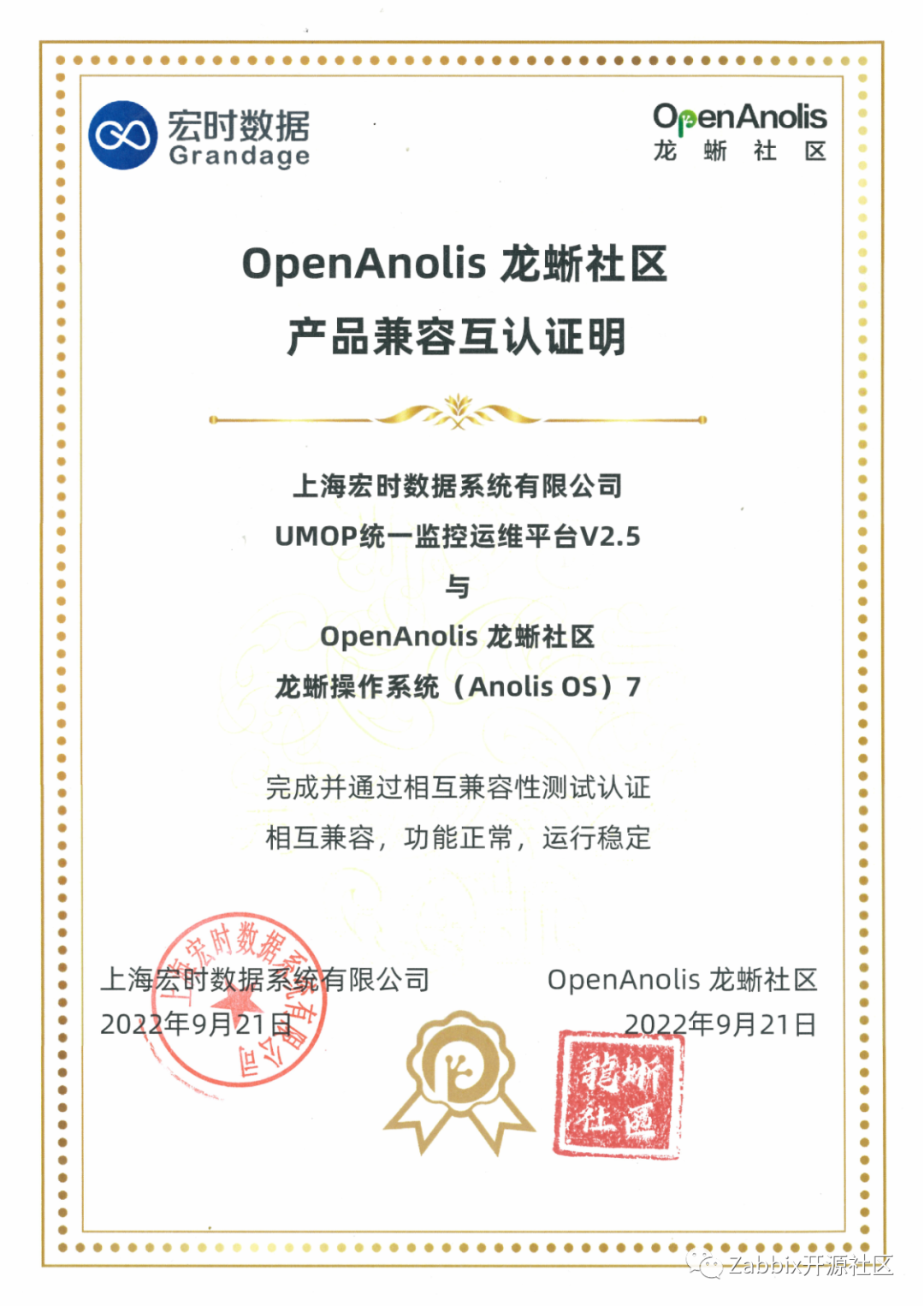 同时,宏时数据自主研发的“UMOP统一监控运维平台”也完成了与阿里龙蜥兼容性认证。