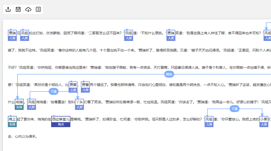 同样的用户也可对关系进行标注,选择关系类型和对应的实体开始标注: