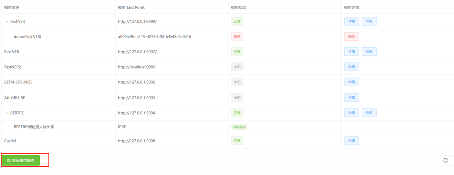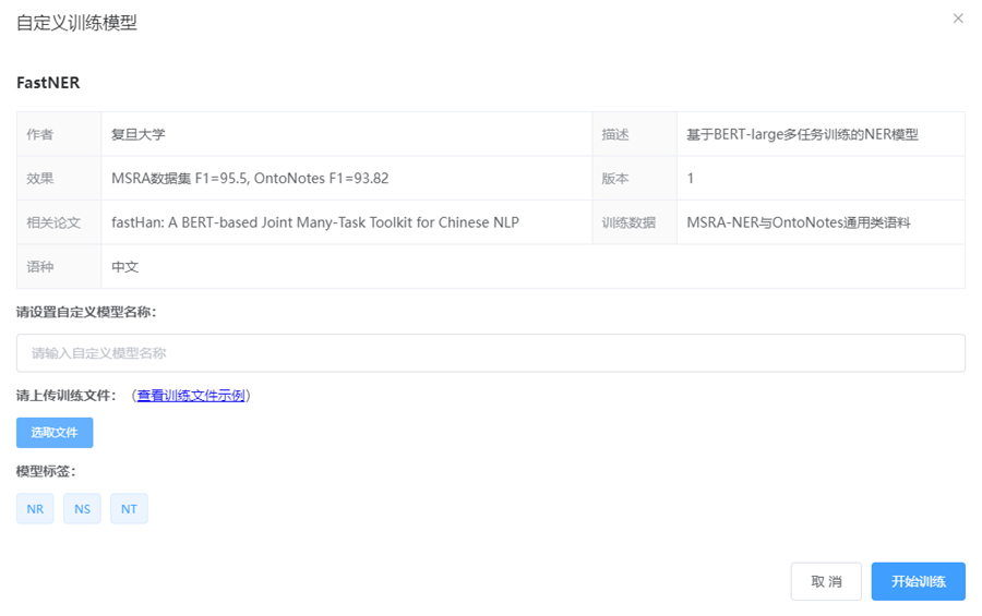 用户可在模型中心对非结构化抽取中的模型进行训练,该功能可将gBuilder现有模型来适应具体的应用场景和数据需要。